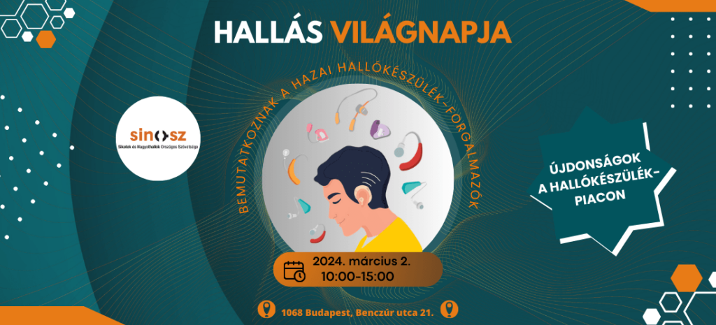 Ebből az apropóból a SINOSZ a hallás világnapjához kapcsolódó rendezvényt szervez, melyre a hazai hallókészülék-forgalmazó cégek képviselőit is meghívta.A szakemberek előadásai és a forgalmazói standok bemutatói körképet adnak a hazai hallókészülék-kínálatról, az újdonságokról.A program a SINOSZ 6. kerületi székházában kerül megrendezésre – a részvétel minden érintett és érdeklődő számára ingyenes, ám regisztrációhoz kötött.