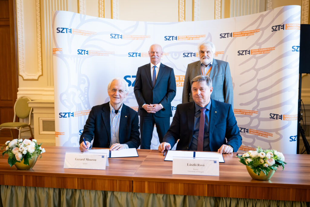 Karikó Katalin után újabb Nobel-díjas professzora van a Szegedi Tudományegyetemnek, Gérard Mourou professzor, aki 2018-ban a lézerfizika területén, az impulzuserősítési felfedezéséért kapta meg a fizikai Nobel-díjat. 2024. április 11-én, egy konferencia keretében, Rovó László professzor, az SZTE rektora és Csák János kulturális és innovációs miniszter jelenlétében, Mourou professzor aláírta a Szegedi Tudományegyetemmel kötött kutatóprofesszori szerződését.